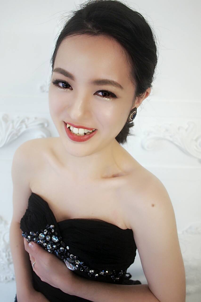第三套是我最愛的大氣黑禮服,因為衣服的氣勢很夠,發芽在這套造型就把我的妝加深了不少,本來想做側邊放髮的造型,但是發芽調一調覺得我還是適合不要遮掩的樣子,所以瞬間放棄她來幫我捲很久側放髮改成乾淨的馬尾,果然,馬尾一綁整個讓我覺得自己是女王,整個氣勢都出來,連拍照都很想一腳把老公踩下去拍哈哈(老公對不起XD)