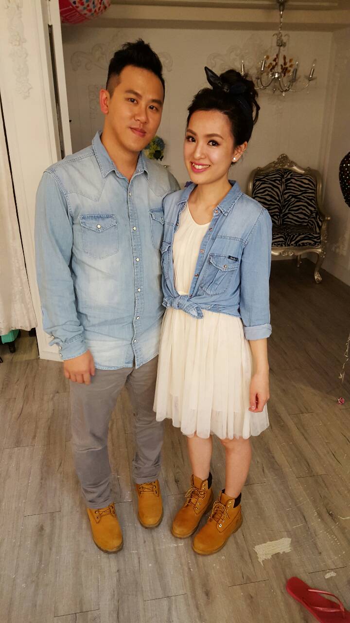 最後是便服風,這套因為是自由發揮沒先跟發芽討論到,發芽看了我帶來的衣服後,就直接把她頭上的髮帶拔下來套我頭上,信手捻來就是一個完美造型,乾淨但又俏皮的丸子頭,搭上髮帶跟牛仔風整個絕配,這個也很重我老公的胃,回家還念念不忘了的說以後我穿小洋裝可以這樣綁我的頭(可是我們家沒有發芽耶老公~~)