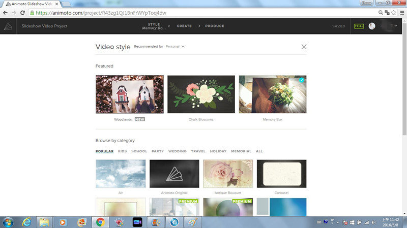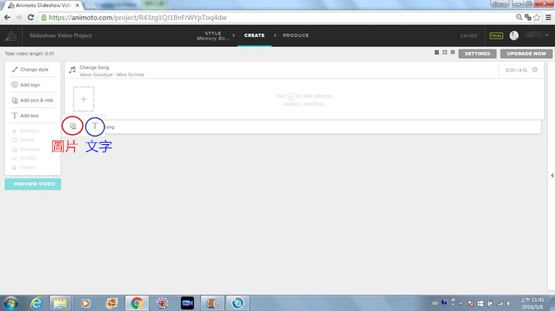 在這裡要特別說一下Animoto如果使用免費的只能編輯15秒而且畫質只有300p