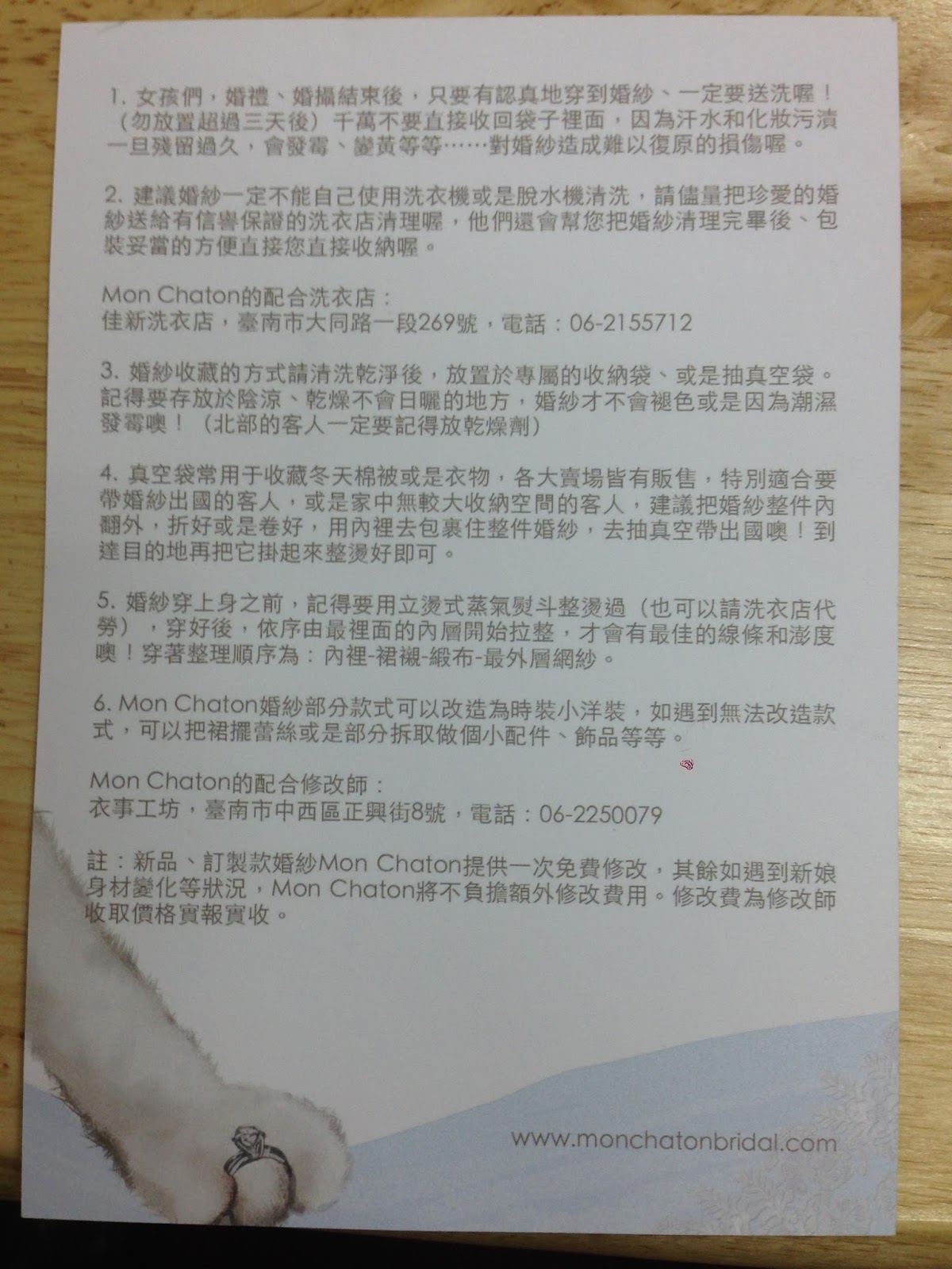 [情報]白紗推薦只賣不租的 Mon Chaton (含洗衣店推薦)