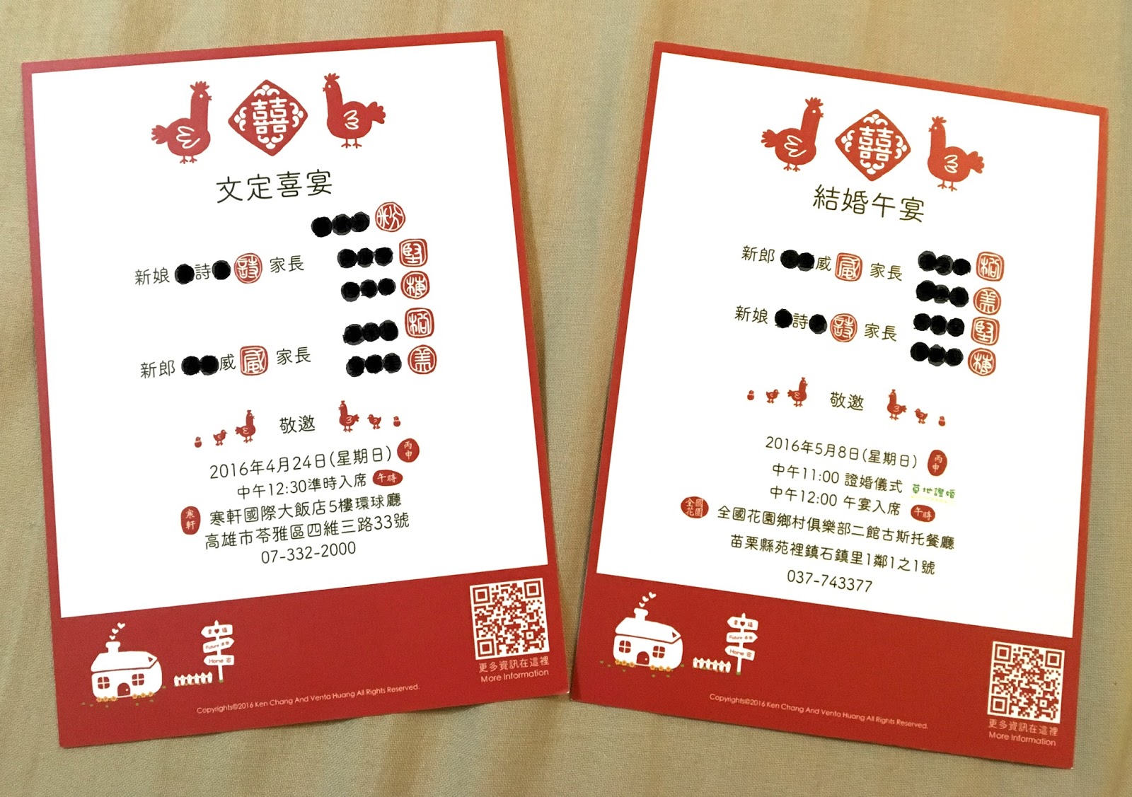 二來每次收到這種喜帖我都要看好久才能理解到底誰跟誰要結婚? (原諒我有文字障礙...)