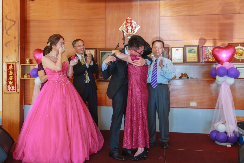 敬酒後的謝親恩,是Joanne調整流程之後的安排,是為了讓賓客能轉換之前的歡樂氣氛進入感性的氛圍裡,搭配老公人來瘋的性格,充分展現出對雙親的愛與感謝,賓客無不感動到頻頻拭淚。