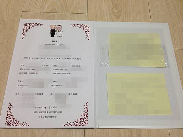 結婚書約夾其實不是必要品,但是想說既然都自製了可愛的結婚證書,幫它找一個美麗的家應該也不為過吧 哈哈