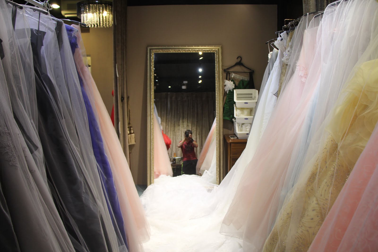 再來就是挑選指定要穿的粉紅色系晚禮服囉!為什麼想挑粉紅色呢?原因是因為我們訂結分開,訂婚本身就是走大紅色系,按照結婚的習俗也是走吉祥紅色。不過因為不想重複穿相同色系,所以就改挑粉紅色了。