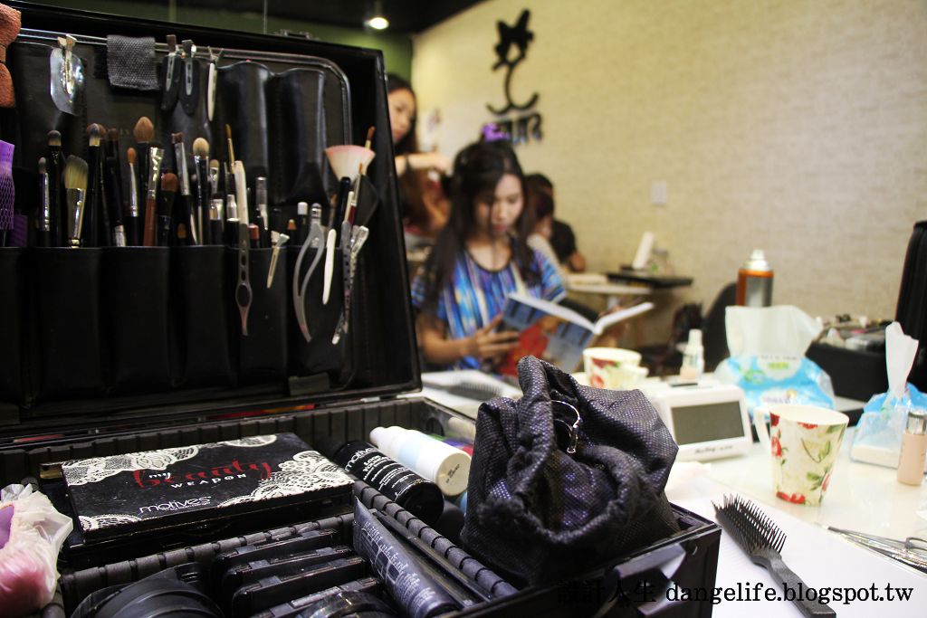 我很幸運,試妝完以後就可以直接試穿婚紗。也因為Gina老師的關係,工作人員感覺就像朋友一樣,一起吃披薩、喝飲料、聊是非。