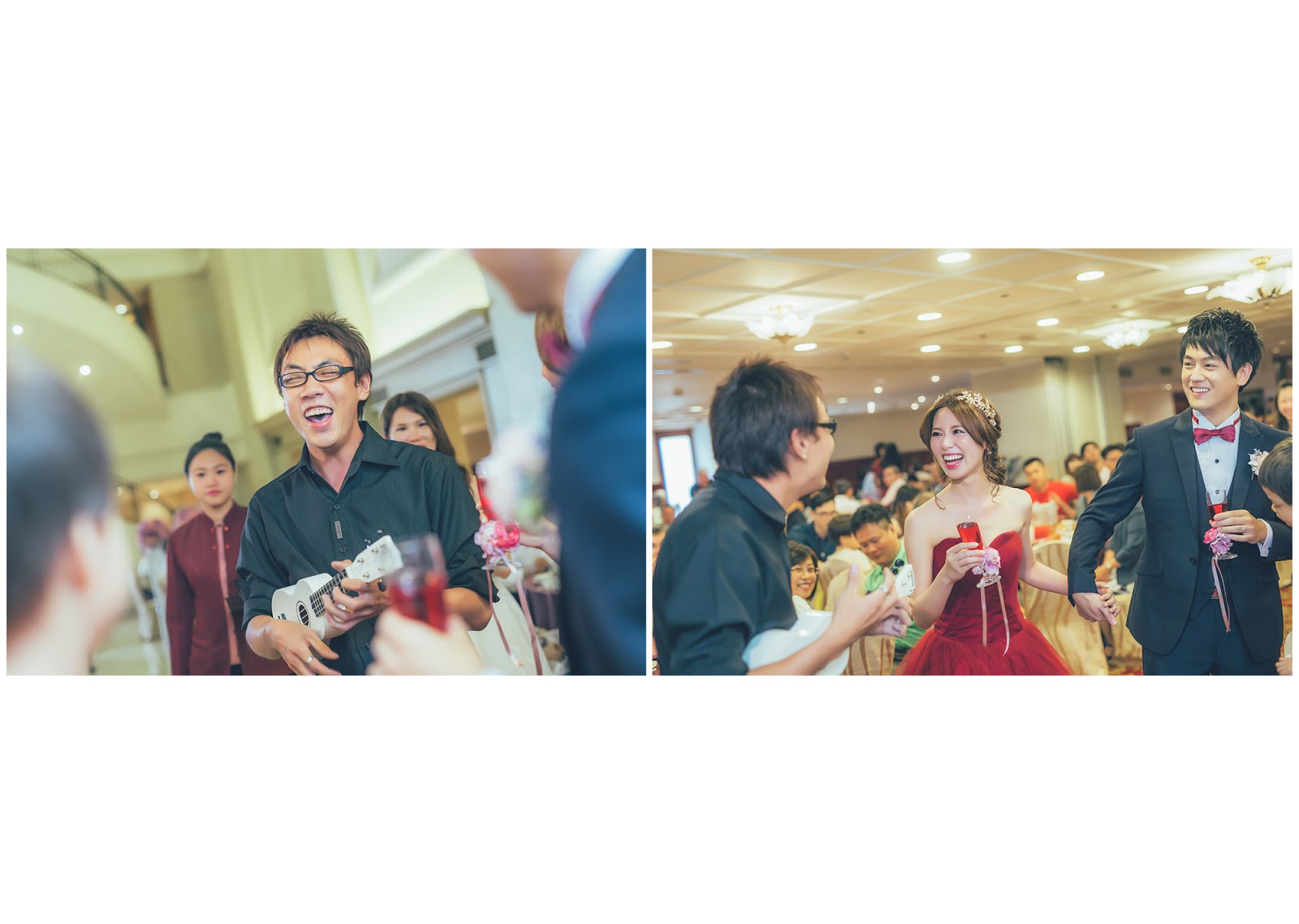 敬了30桌,瘋狂的友人逼我們親嘴才能換桌XD 居然還自備烏克麗麗! 把我爸媽逗得笑嘻嘻