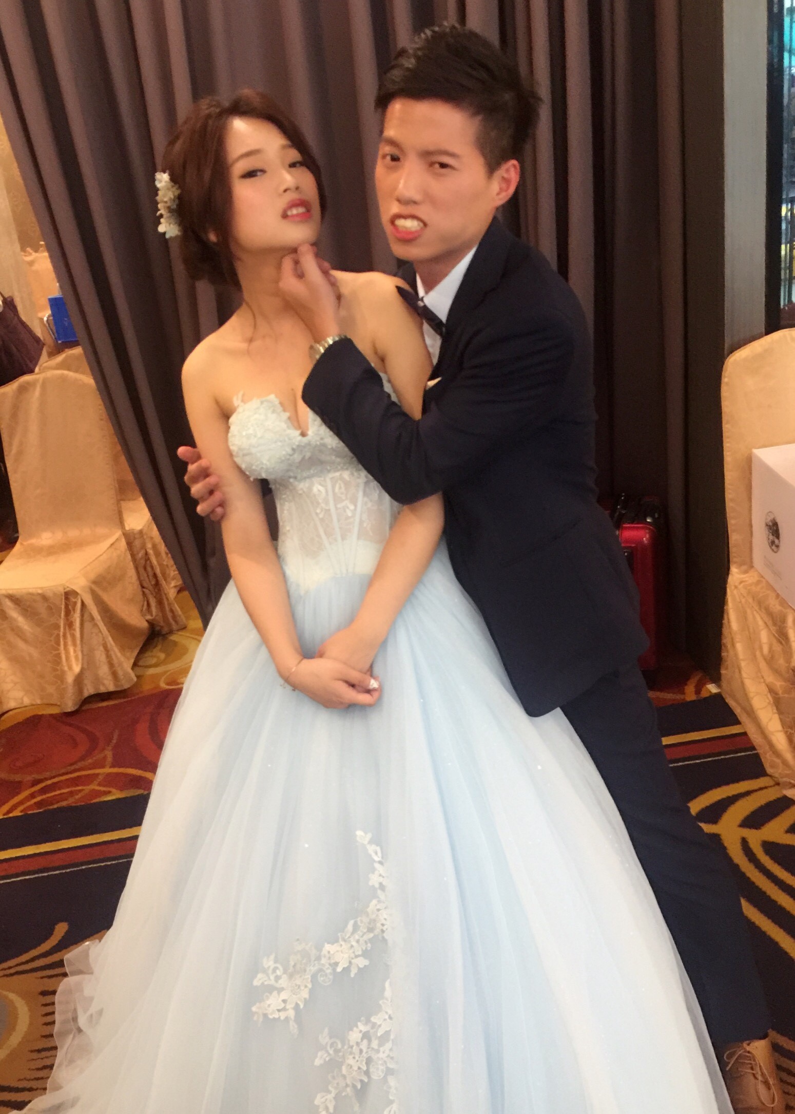 *結婚當天迎娶結束到晚宴時間算是充裕,換上輕便的衣服明明是要讓我好好休息一下補充體力,不知道新人跟朋友們在瘋什麼,還玩起超級比一比,茲茲也被我拉進來玩(好好cue的新祕但我們一直慘輸害茲茲好懊惱),玩到一半老公朋友還以為茲茲是我朋友(從訂婚以來都被這麼認為,誰叫茲茲長的太幼齒了XD)茲茲說被療癒了,我真的好開心阿阿~妳懂的XDDDD