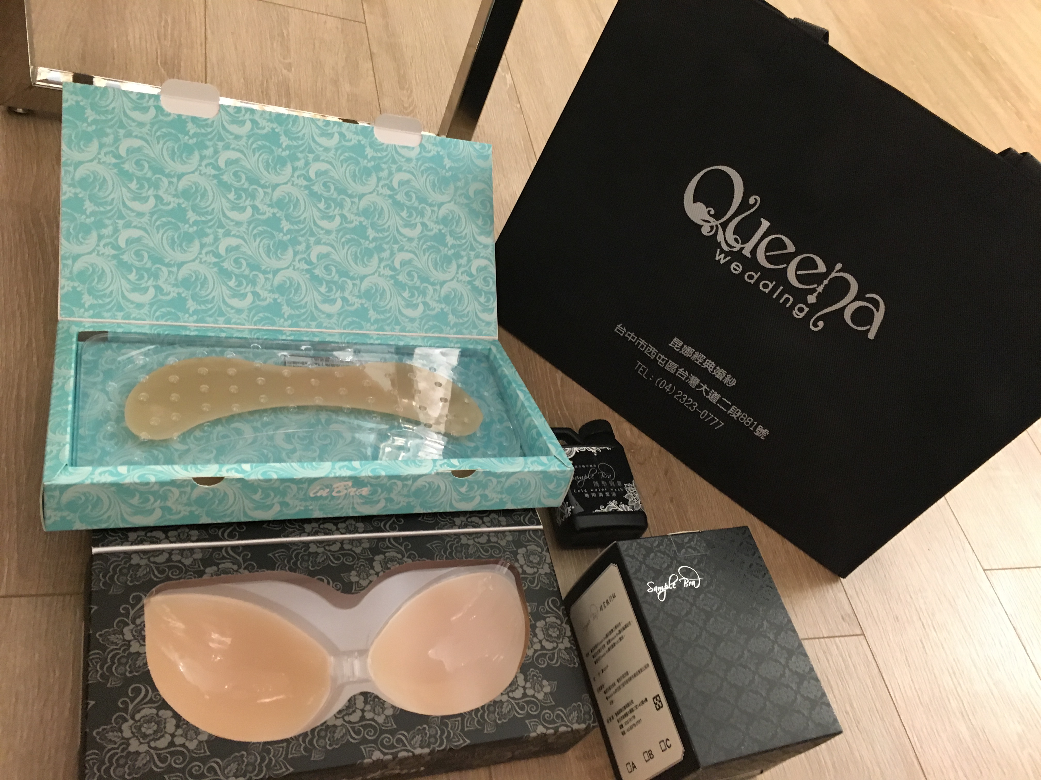第一次洽談時有試穿禮服,我並沒想到要帶Nu Bra,不過Queen貼心的準備Nu Bra讓新娘使用。比較讓人驚豔的是叫做"武媚娘"的另一種東西,就是電視劇中我們看到可以把胸部集中托高的另一個商品!