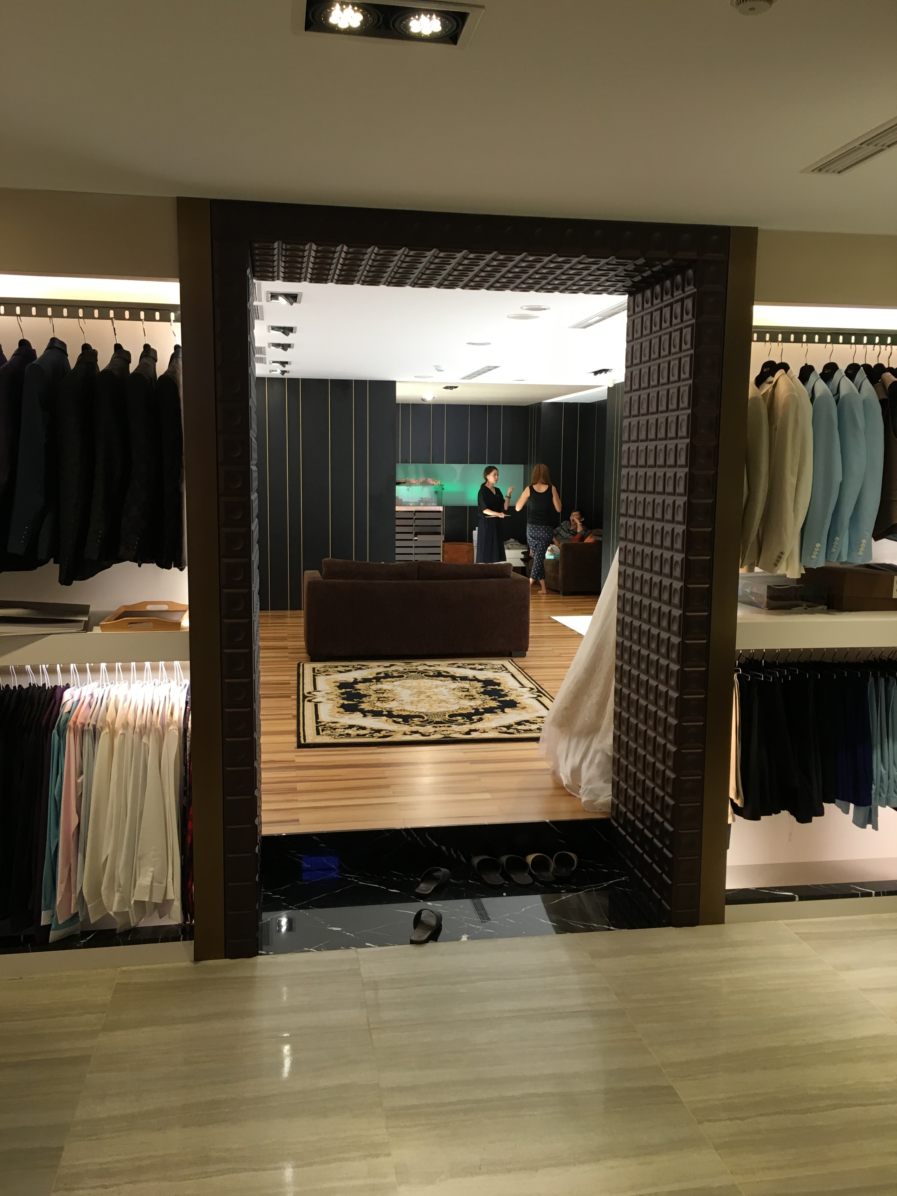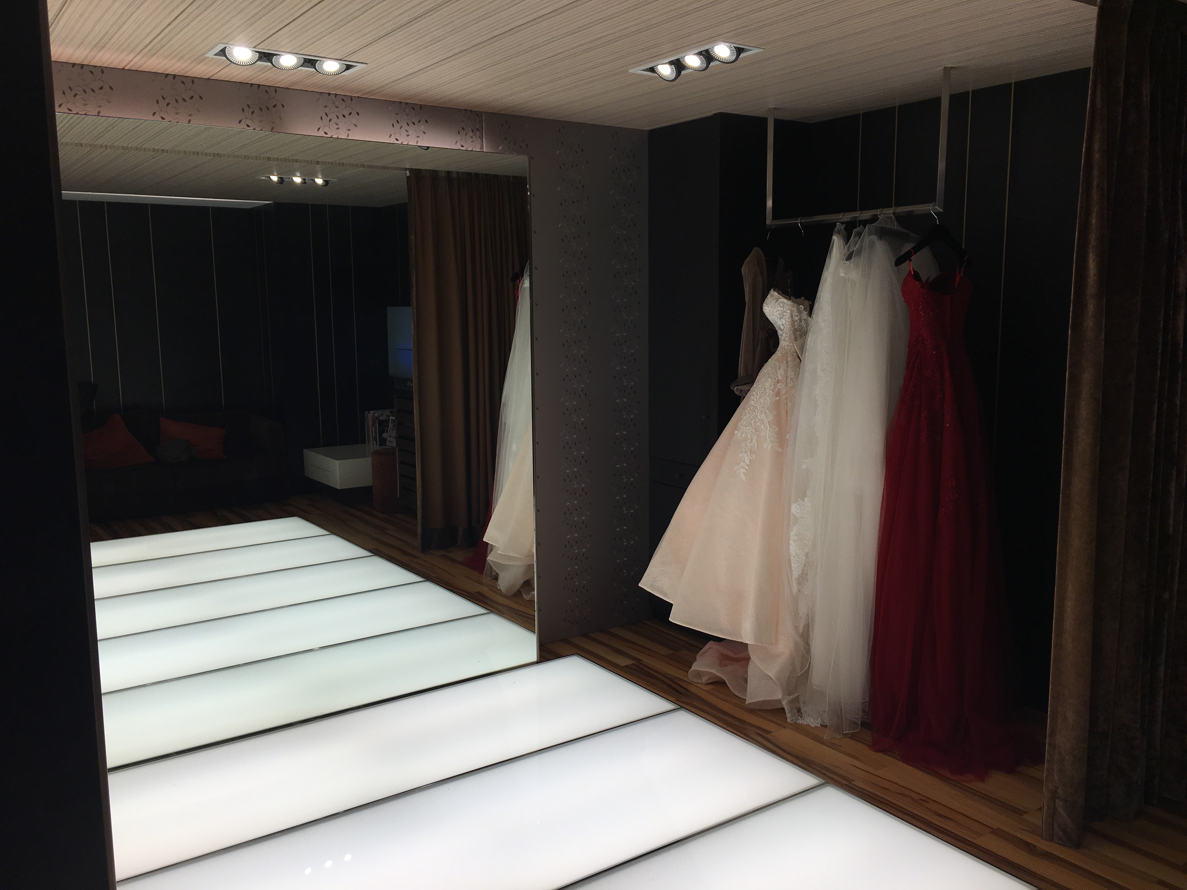 二樓跟三樓都有試衣間,穿上禮服再打上燈光好像伸展台一樣,原來這樣才可以清楚看到禮服的蕾絲。