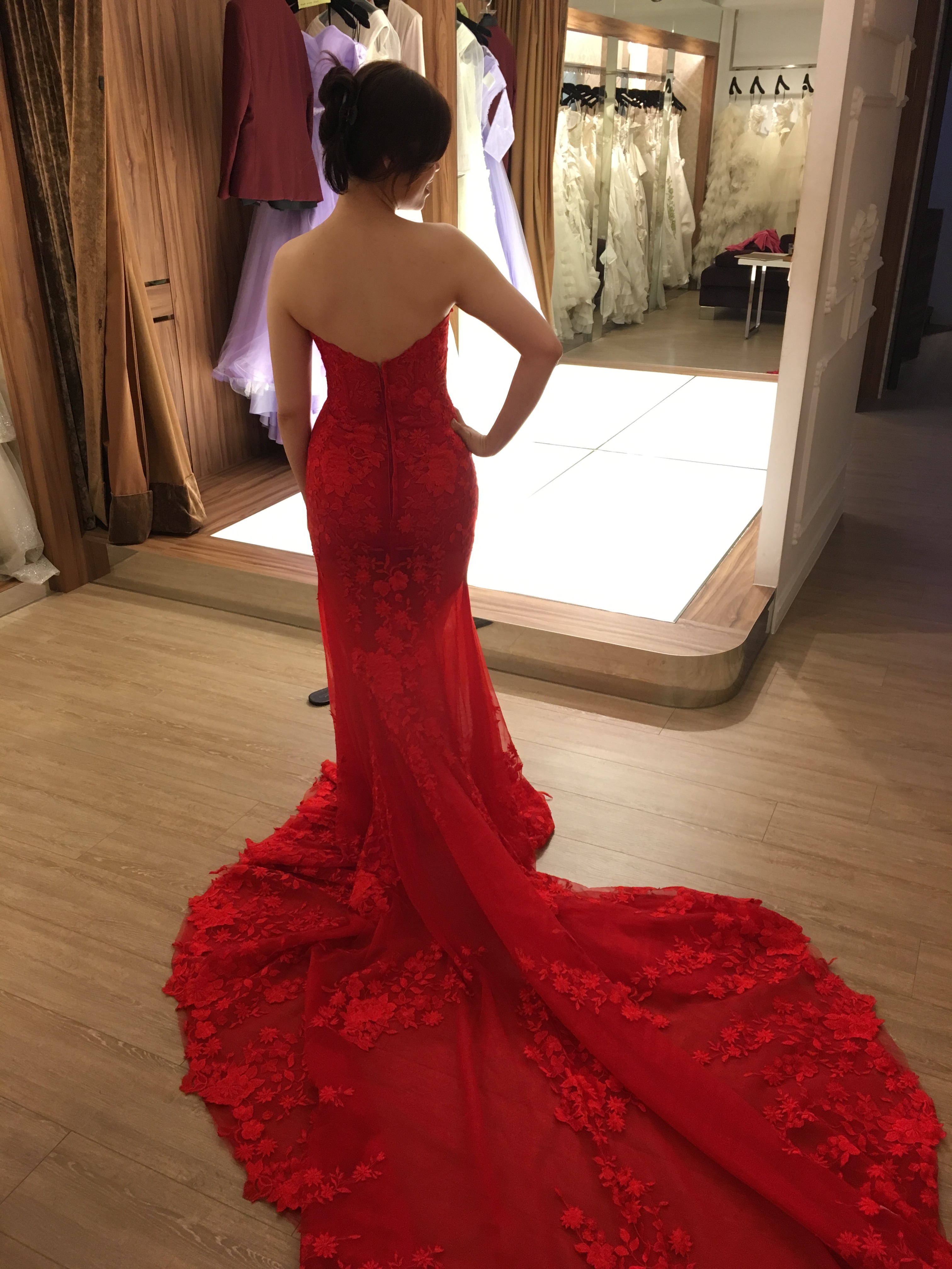 也挑戰了我不會想嘗試的大紅色魚尾禮服!