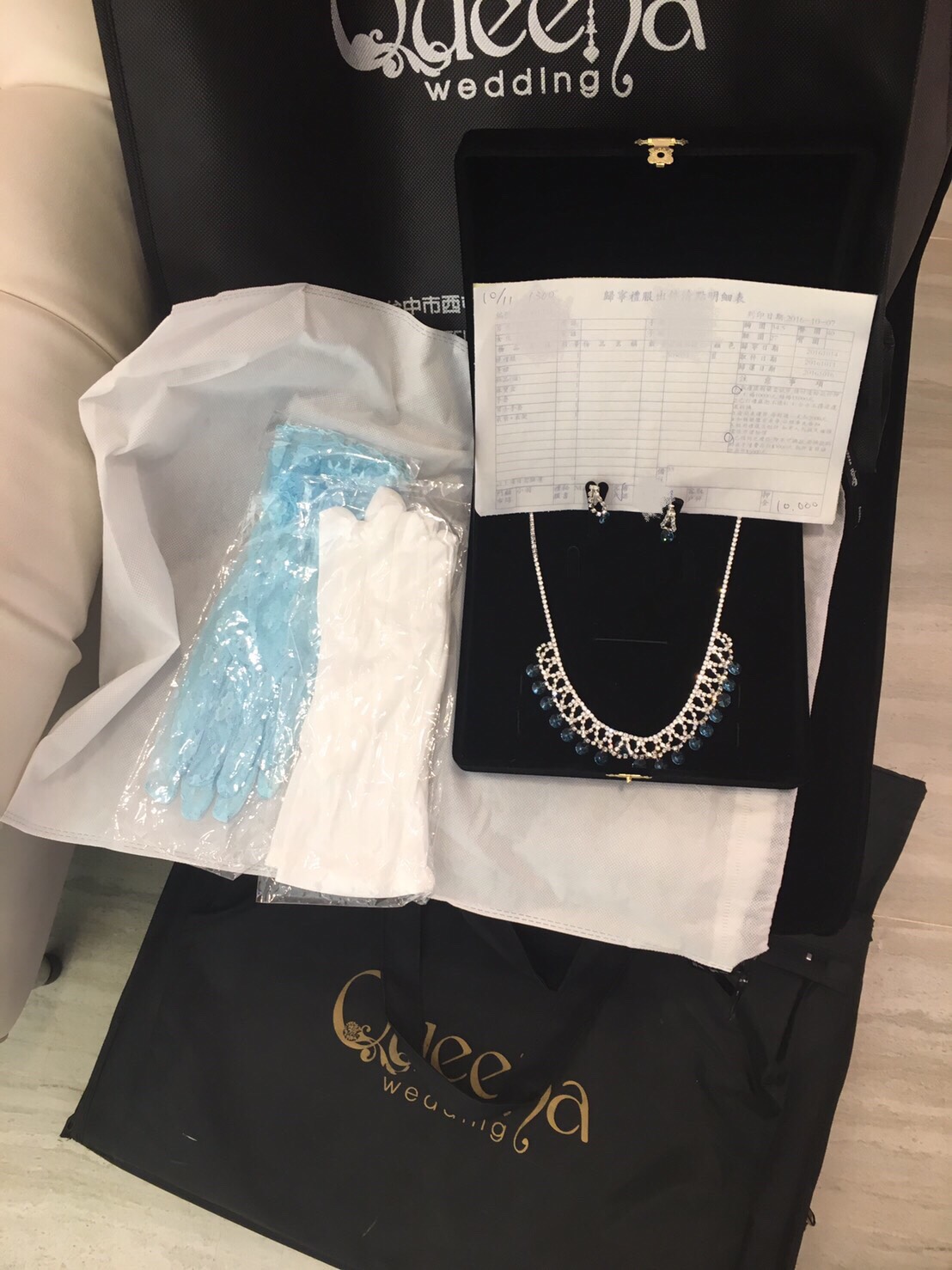 針對我們挑的每一套禮服,在取件的時候Mandy都幫我們找了各別的配件和手套!