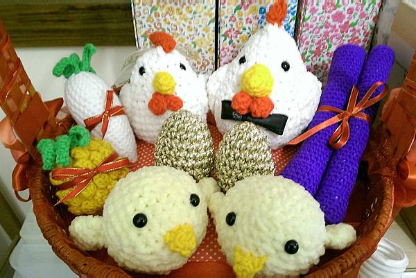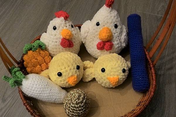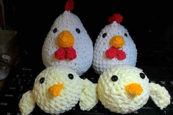 哈哈,超可愛的吧!大雞小雞的身體都用珊瑚絨毛線,軟軟的好好摸~ 寶寶大一點可以當玩具 XD