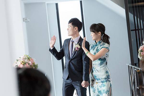 除了已經做好的兩支影片之外,想說讓大家好好吃飯、敘舊,就沒用遊戲、表演或是其他活動打擾大家,不要喝完喜酒就下午4點了==也沒有找伴娘、伴郎、花童,不丟/抽捧花;覺得最開心的是在第二次進場時成功拿到麥克風跟大家講話哈哈哈>w<(犯職業病),畢竟大家是為了我們而來的啊~(甩髮)
