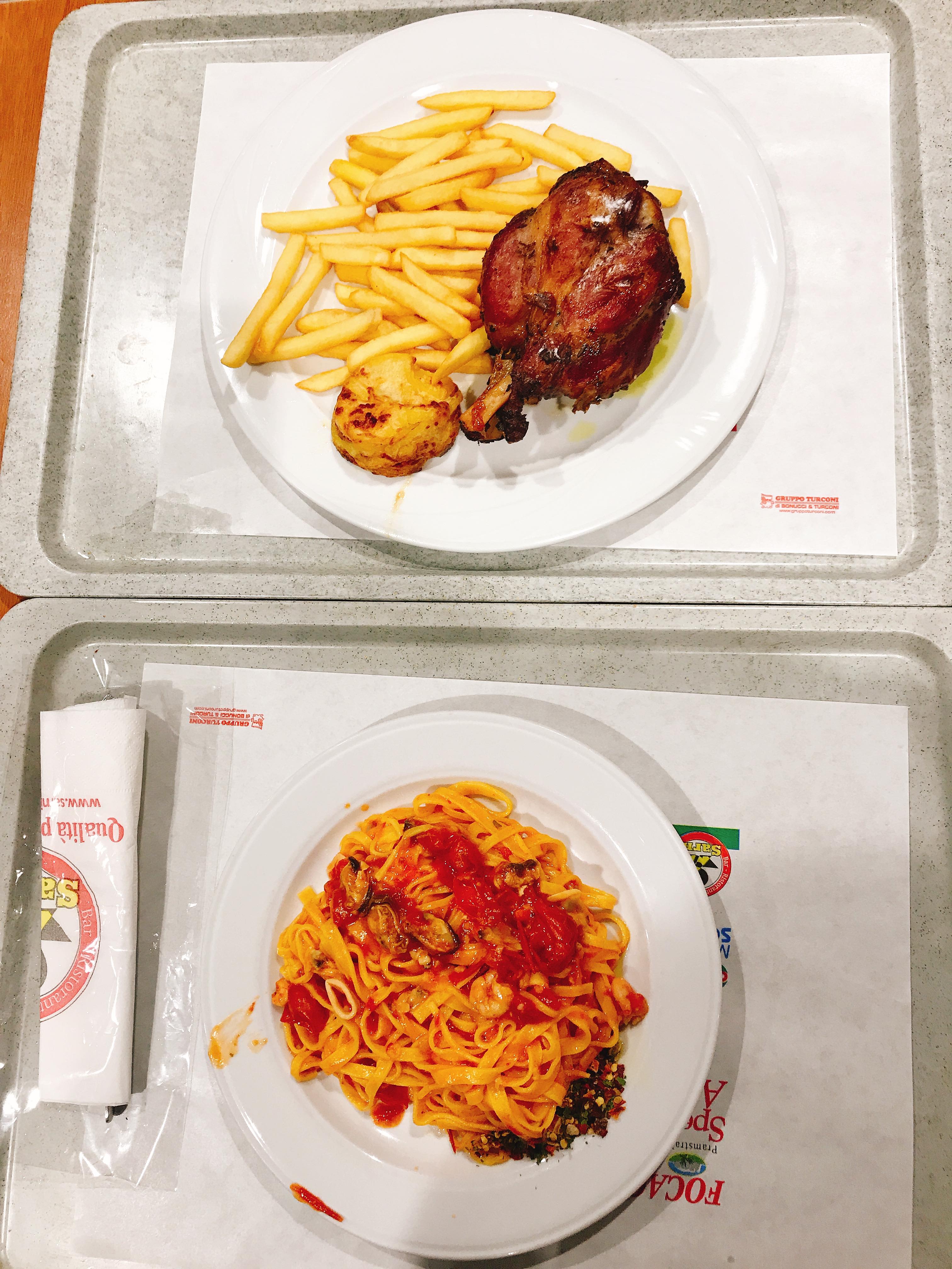 在高速公路休息站的自理餐沒有很好吃那是我們抵達義大利的第一份餐食