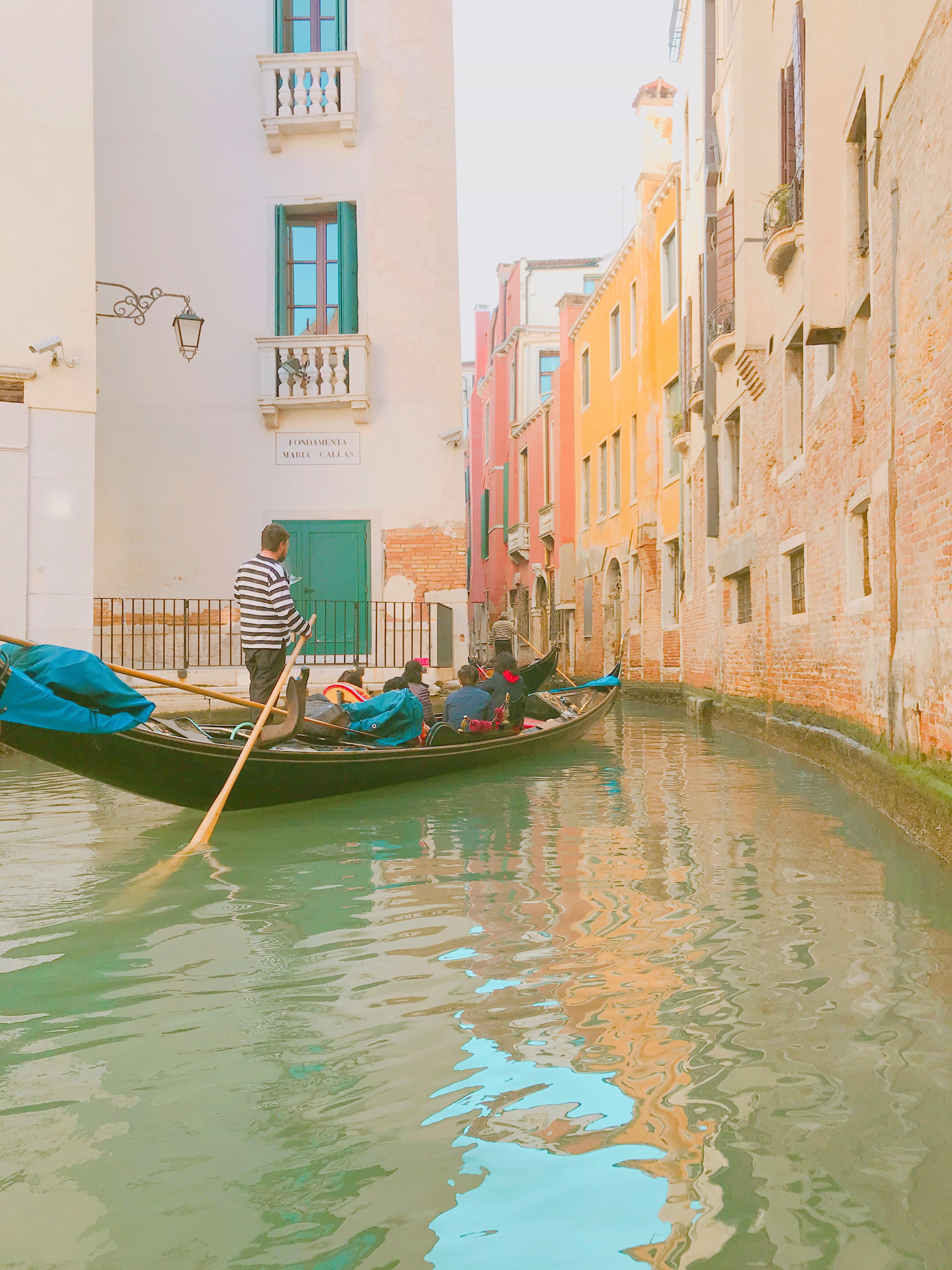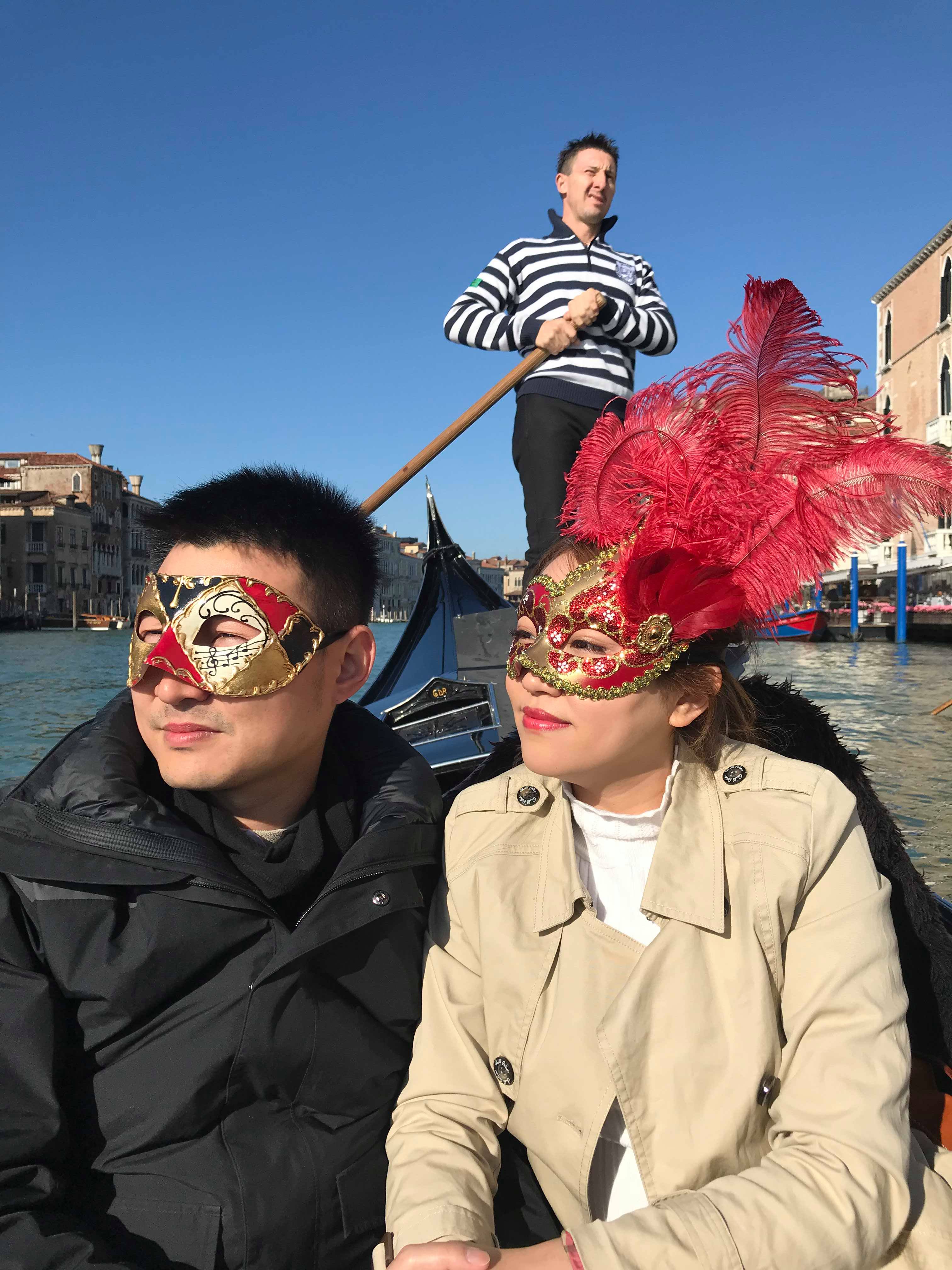 我們戴面具搭乘貢多拉船體驗水都風情