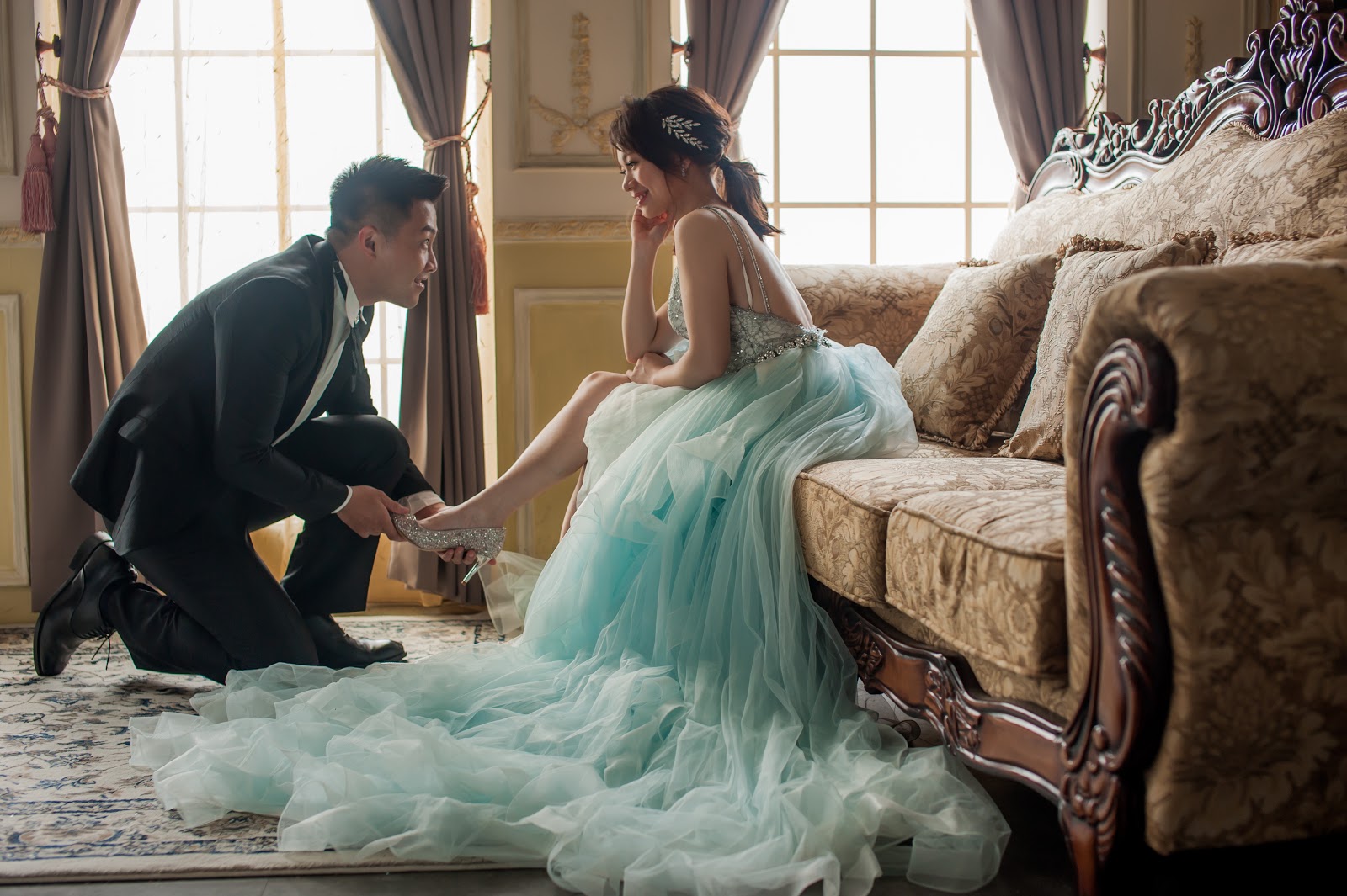 還有拍老公幫我穿鞋的pose,