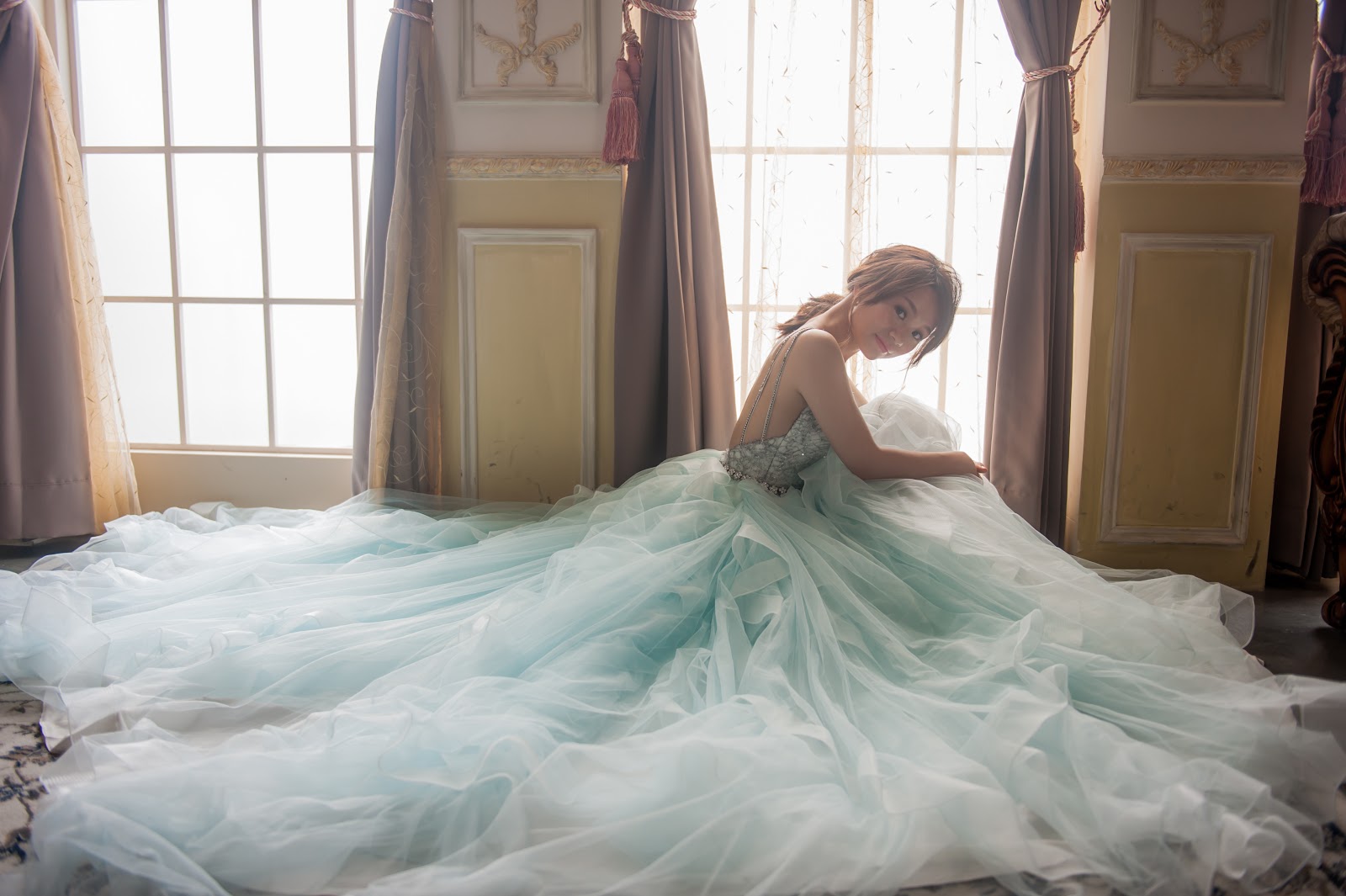 拍攝之前除了挑選禮服外,還會特別約一個時間到工作室討論拍攝風格與妝髮,