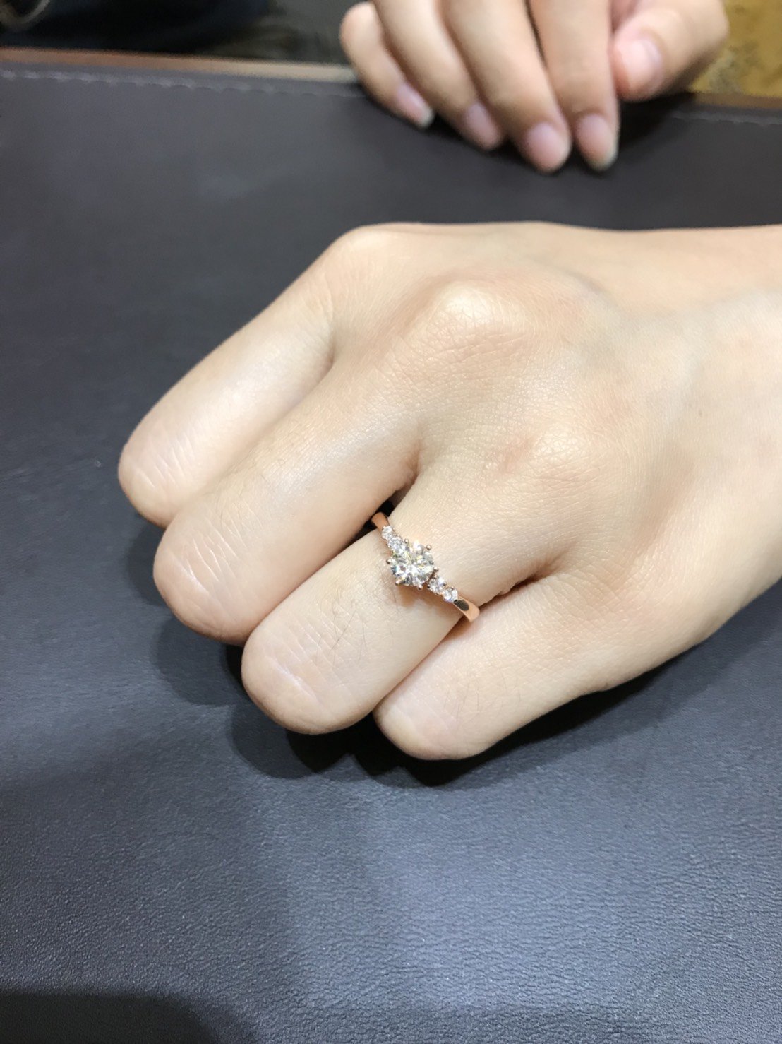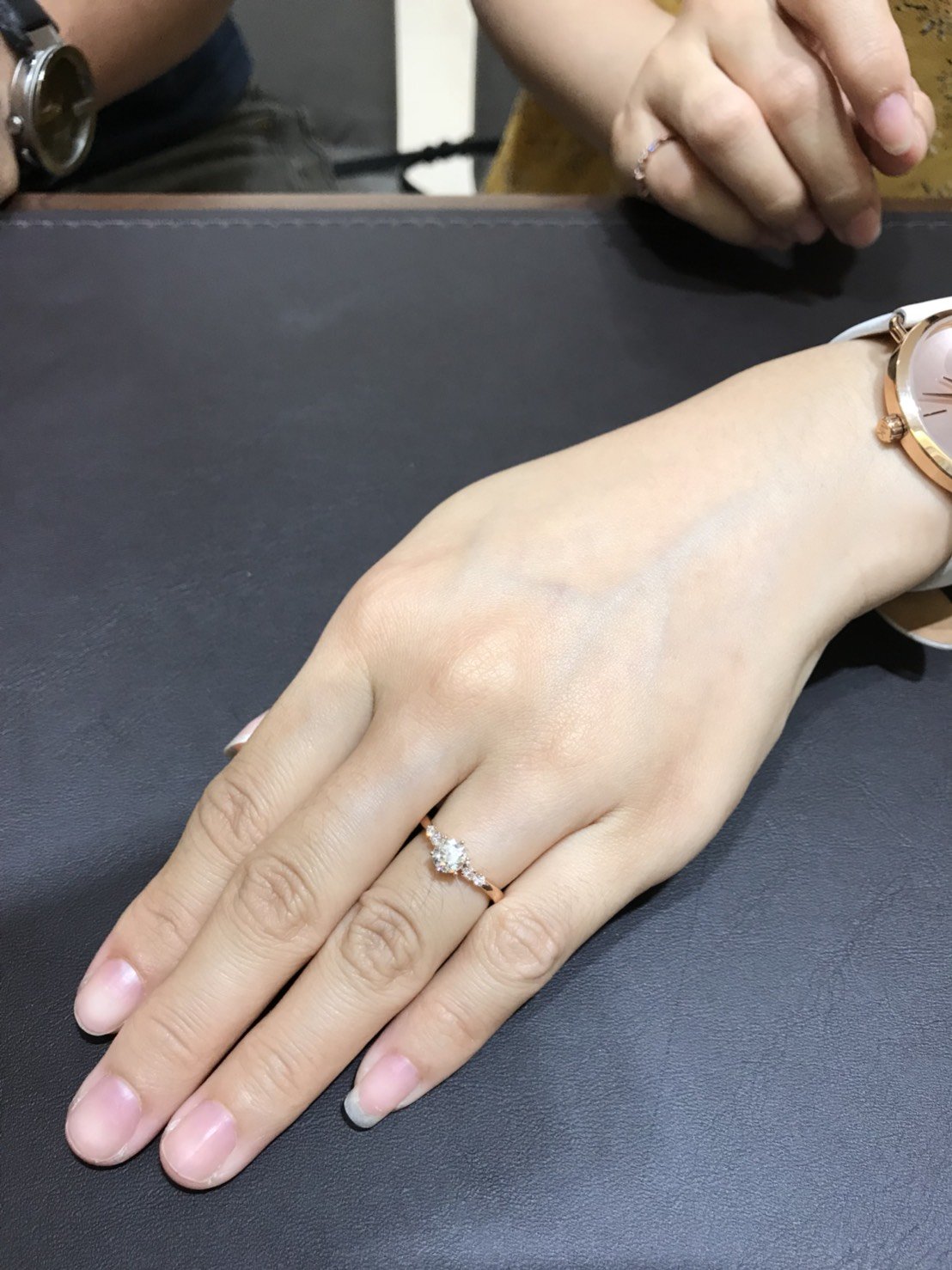 在剛開始挑選鑽戒時,於網路上搜尋諸家店家資訊,也看到許多過來人的推薦文,以價位預算、款式多寡來考量,最後決定至台中亞立詩,來到亞立詩後幫我們服務的人員是-Amanda, 她的態度親切,隨時注意我們的需求,戒台款式、鑽石等級、價位預算等等,讓我們可以順利訂製到完美鑽石婚戒。