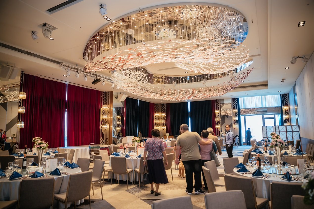 宴會廳的格局很方正,高樓層,窗簾拉開有一望無際的景色;