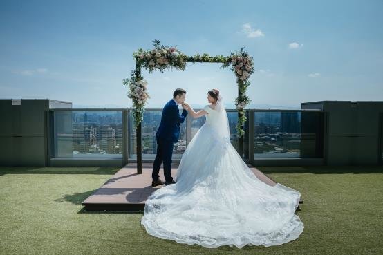 沒有惱人的大柱子,也沒有壓迫的天花板,這個廳真的很美啊!而且頂樓還有露天的證婚花台。