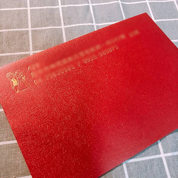 喜帖封面長輩一定要燙金,但是新娘想要有質感,老公上網找了一間燙金的廠商,收到成品我跟老公都很滿意