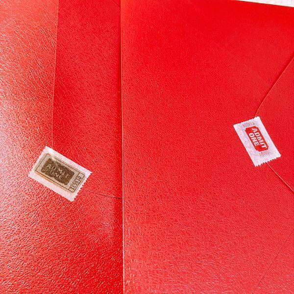 封口的囍字也換成紙膠帶,因為不喜歡外面賣的那種喜字貼,這款紙膠帶是票券入場的概念,覺得非常適合喜帖用
