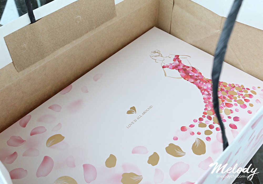 這款是香貝里最新推出的盒款,盒面設計以霧面為底,搭配上優雅的燙金玫瑰花瓣,整體風格很是簡單清新。