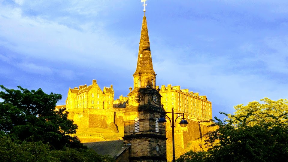 <從飯店旁幸運的拍到在夕陽中的黃金愛丁古堡>