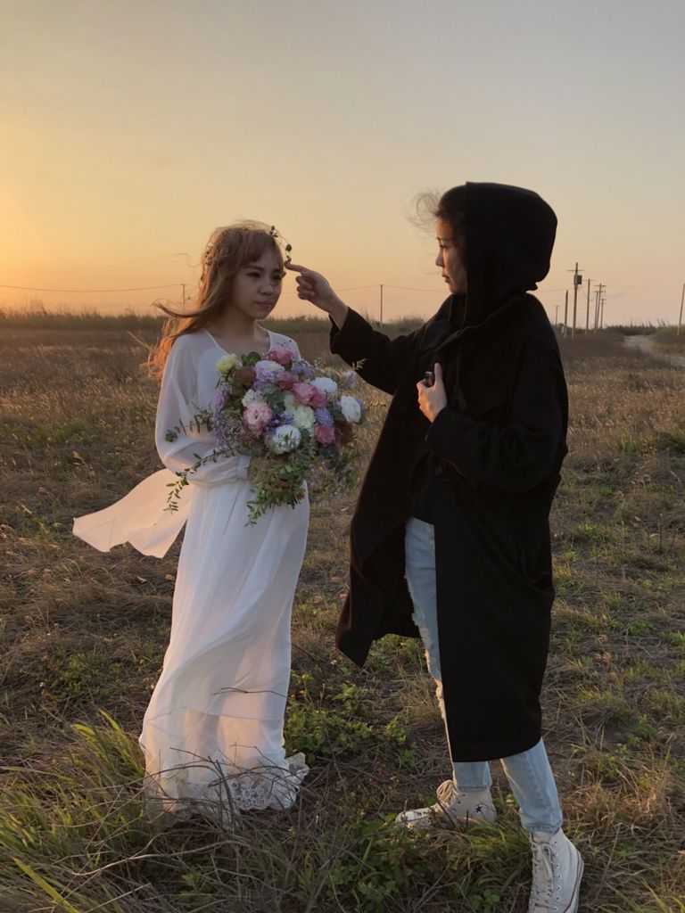 還很細心的跟拍調整禮服、妝髮,甚至是拍攝角度的裙擺