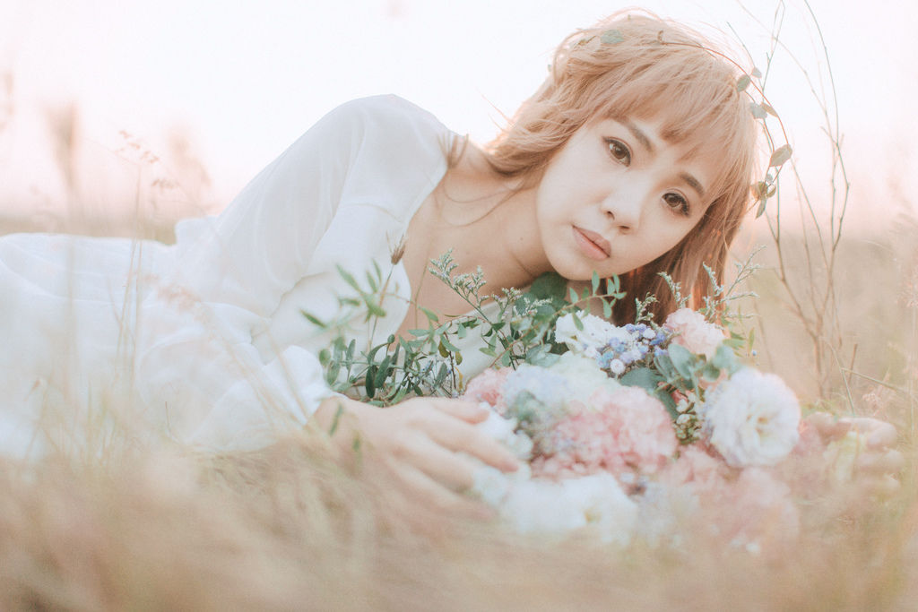 不讓花兒搶走新人風采,反而增添女孩的仙氣