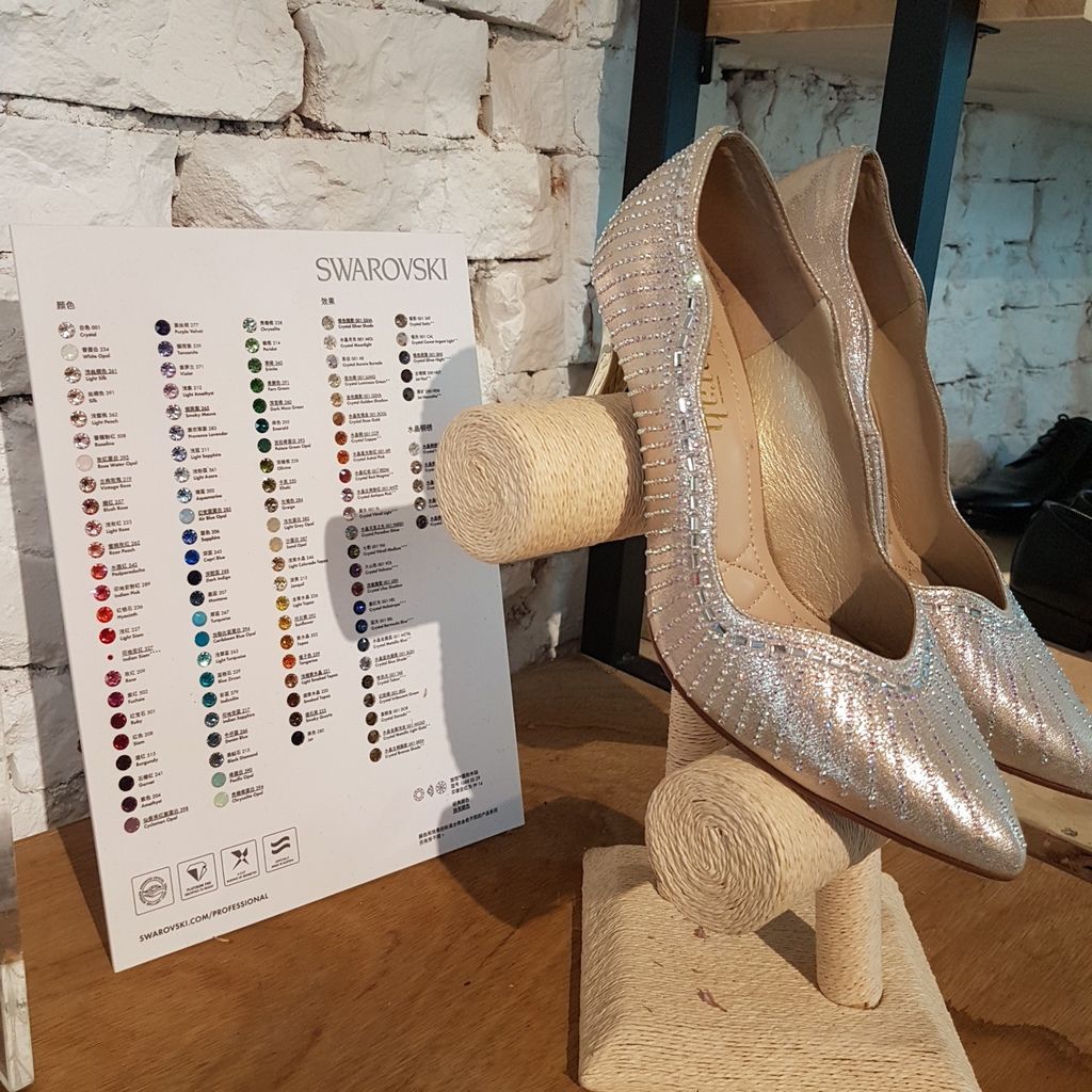 除了水晶顏色,像是鞋跟高度啦,布料顏色啦,通通可以自己搭配