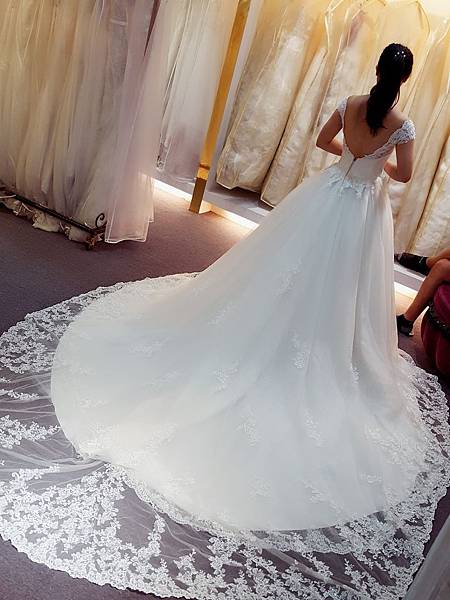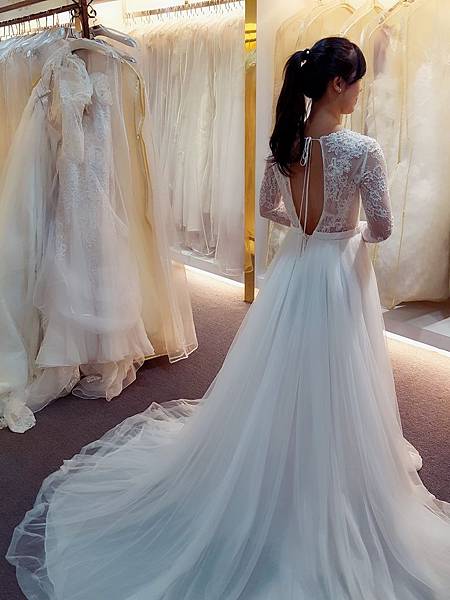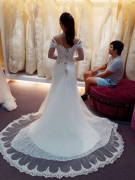 最後是選了這套~可以斜肩~露個美背的白紗