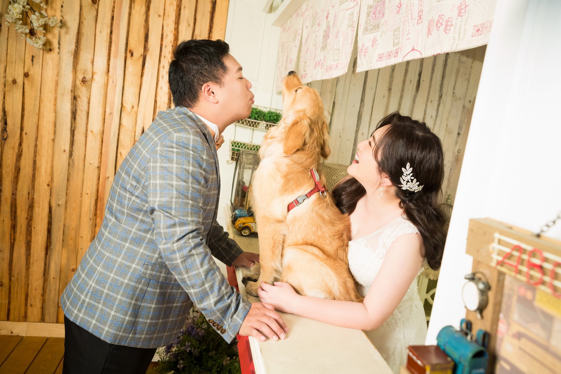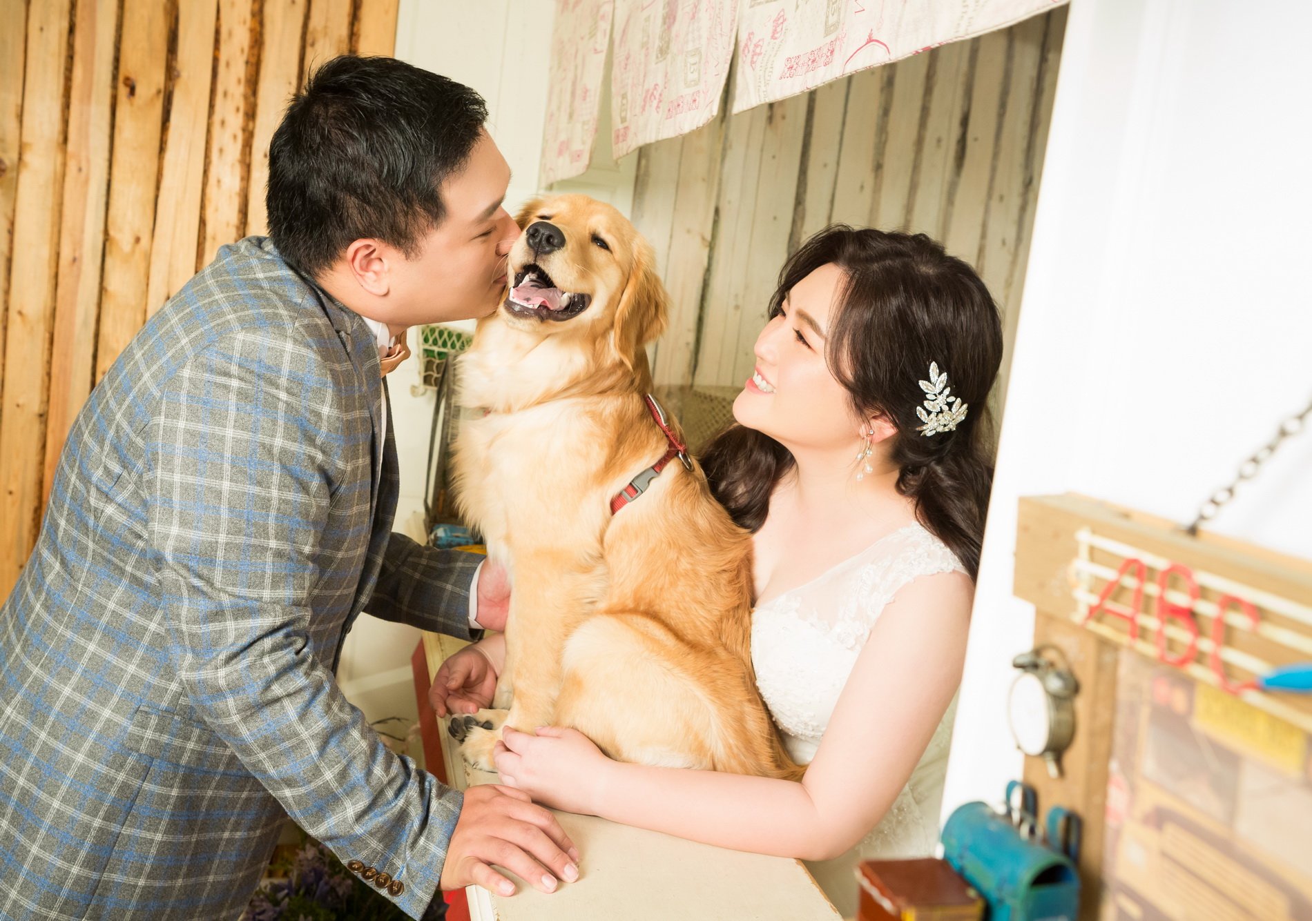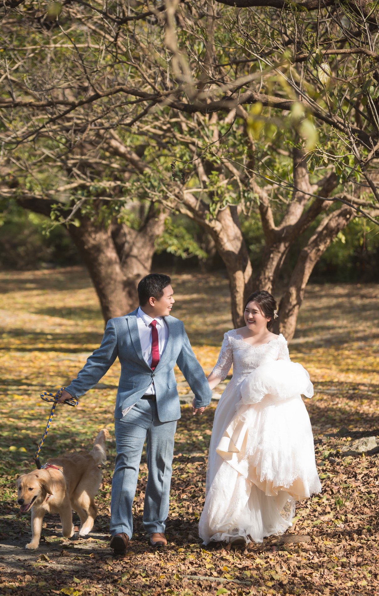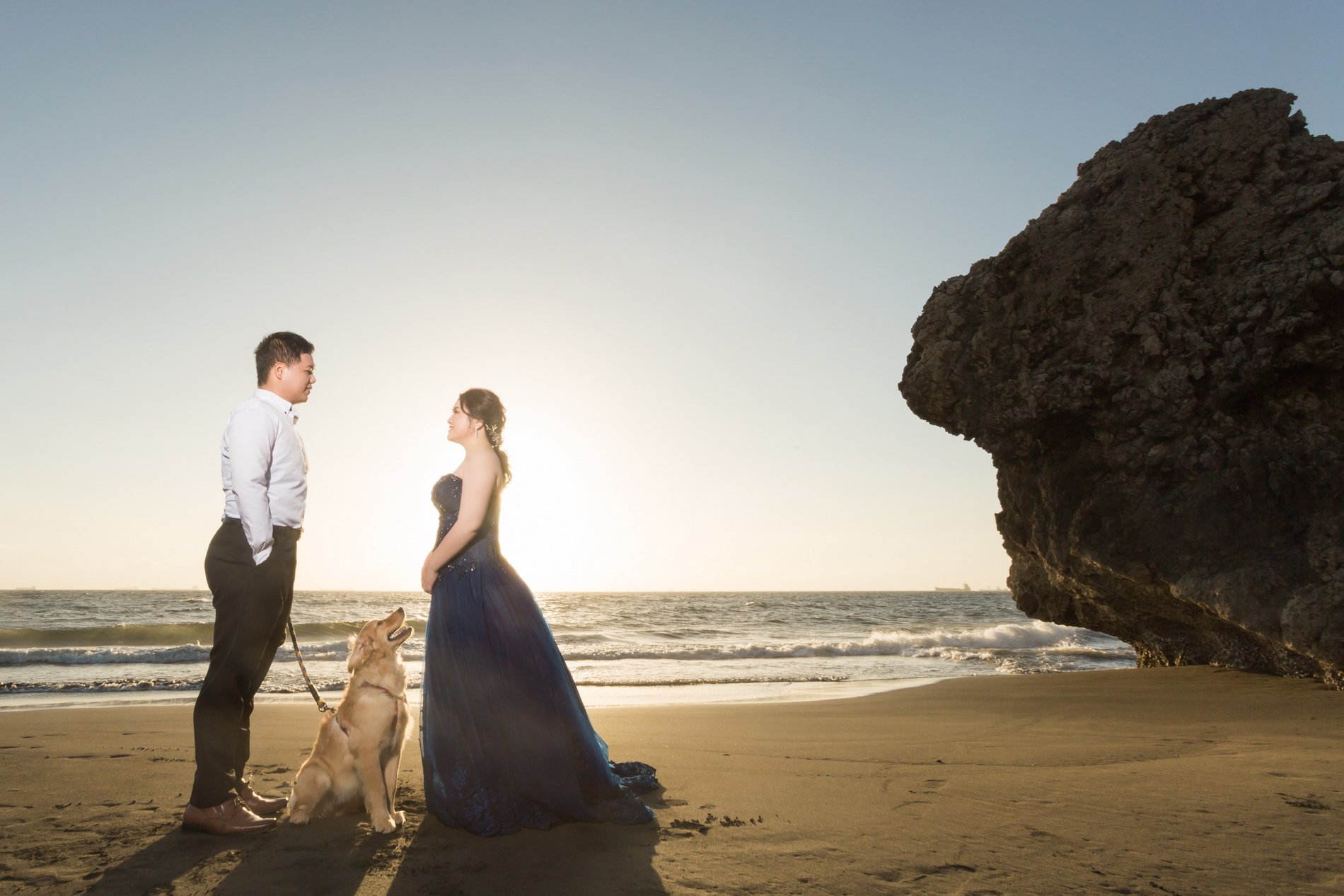 很幸運這次有遇到Yumi老師能夠為我們拍攝婚紗照,過先前作品以及拍照前的溝通Yumi也都能夠很清楚的了解我們的需求與想要的意境。拍攝前由造型師郁晨為我們的妝容操刀,非常的專業、細心以及溫柔,雖說化妝需要很長時間,但也因為郁晨的專業,讓我們不至於感覺到很累。在拍攝內外景時我們特別帶了家裡的黃金一起,Yumi和Joe也很樂意幫我們拍攝與照顧我們的寵物,整體的感覺就像是好友一同出遊並且拍照留念的感覺,非常的自然與輕鬆!