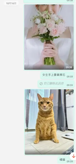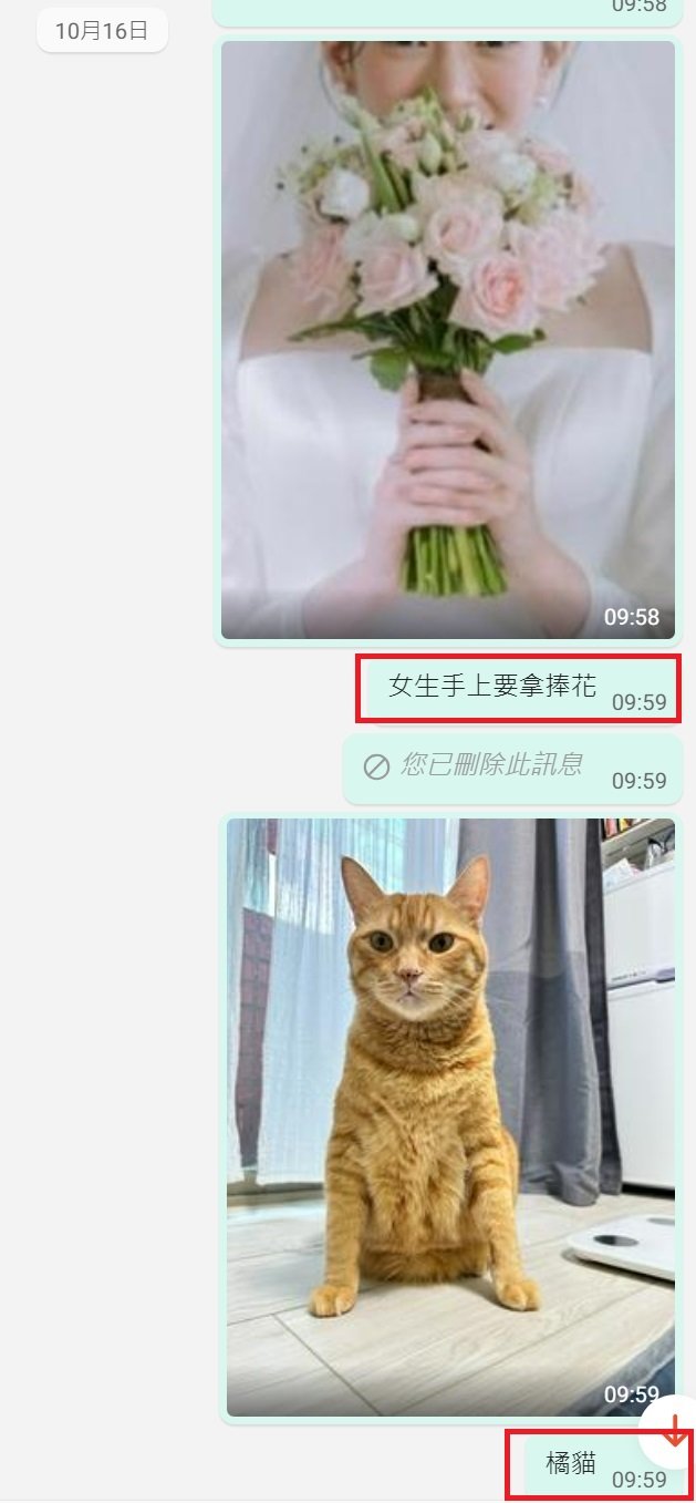 G-1 整張圖貓的部分還好一點,G-2就是所有東西擺上去,貓直接擺在旁邊真的超級突兀,也沒有我原本參考賣場那張的溫馨感,看到這我相信以這個賣場一貫回覆風格一定會把我塑造成奧客,看起來怎麼麼樣的氛圍可以說是見仁見智,那我們就來說說我加購的捧花,原本照片是我手搭在先生肚子上,我的手姿勢不變然後插進一個捧花,我就問捧花誰會這樣拿? 這難道不是基本的sense嗎?我看到真的無語?啊!我知道了,你會說你給我的照片是這樣啊,我就照著畫,加購捧花如果連姿勢都不變,難道不應該提醒客人嗎?