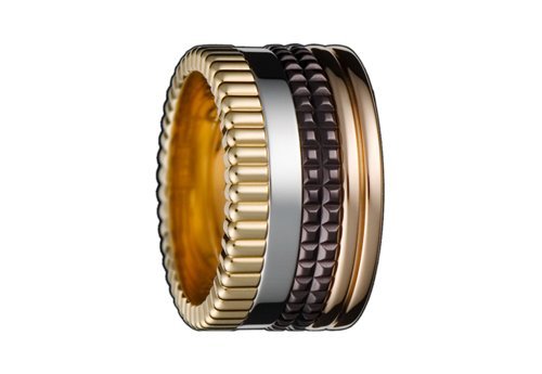 在這裡跟大家分享選擇婚戒的心得。由於我先生在求婚的時候已經給了我一只鑽戒,在選擇婚戒的時候我就沒有將鑽石納入考量之中。我們兩個人都喜歡簡潔有現代感的設計,在雜誌上作了功課之後,我已經將範圍縮小到幾個牌子之中:Piaget、Boucheron、Cartier。B牌最有設計感,Quatre系列讓我簡直是愛不釋手!可惜對於男生來說真的是有一點太花俏。C牌是我們比較不考慮的一個,因為先生送的定情物已經是我認為C牌婚戒當中最好看的那一款了。本來想說省一點錢,買男裝戒來配那個舊戒指就好,沒想到那個戒指不能改戒圍(我本來是戴在左手中指),只好作罷。