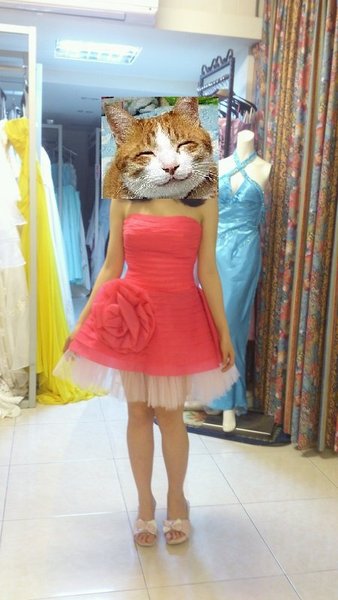 二手禮服店購入 短版非常俏麗, 裙襬還有白紗裝飾 很特別 還有很多縫份可以修改