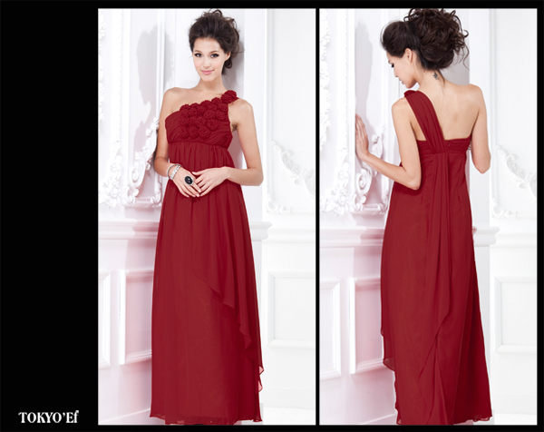 1. 華麗玫瑰 斜肩雪紡波浪層次長禮服 紅色 欲售 1200