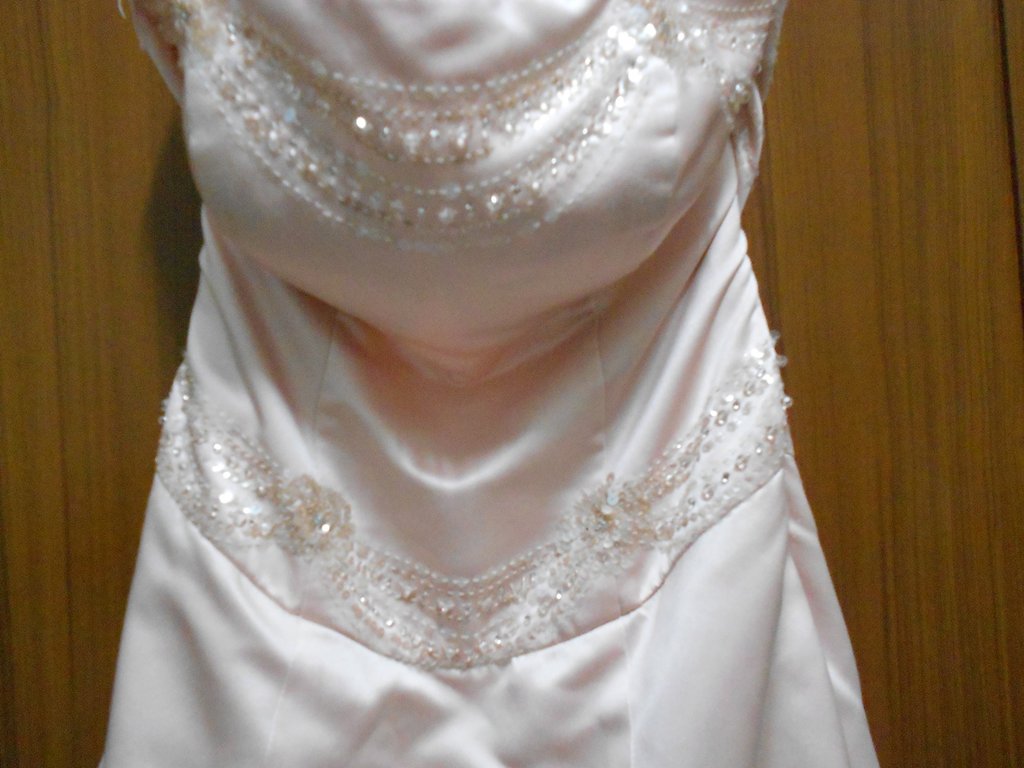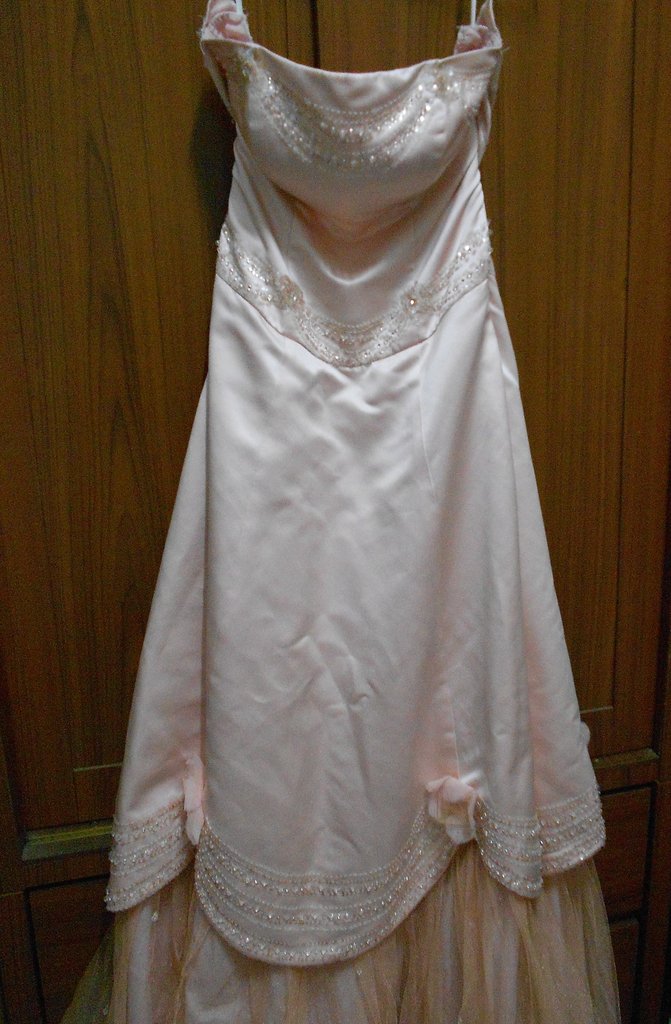 雖然是二手,有些串珠脫落,但布面緞的質感,仍禮服整體看起來很不錯。