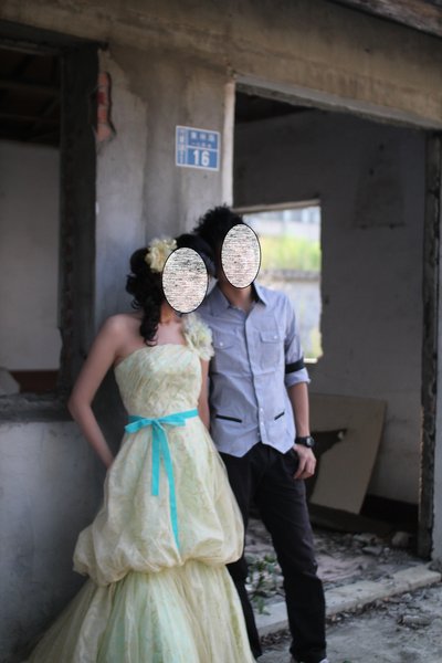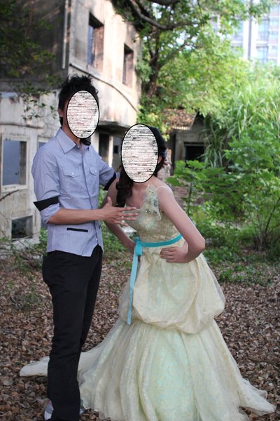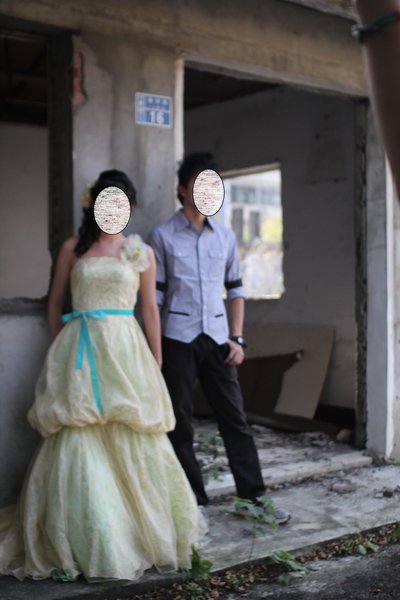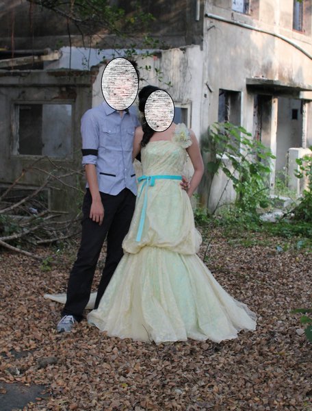 自助婚紗~黃綠色~魚尾澎裙出售~