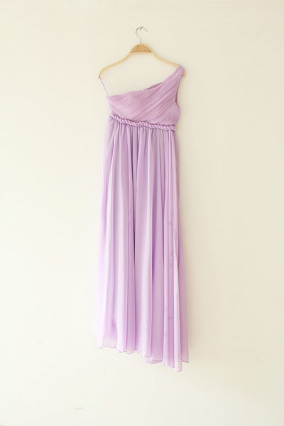 全新轉賣浪漫希臘風絕美斜肩禮服(紫M)
