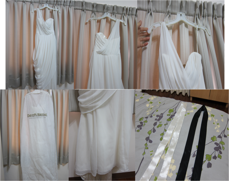 這件禮服是請剛好去國外遊學2個月的朋友幫我在 DAVID'S BRIDAL 網站購入並郵寄到她的宿舍 , 再親自帶回來  (若有確定要購買可提供網路下訂的資訊紙本)