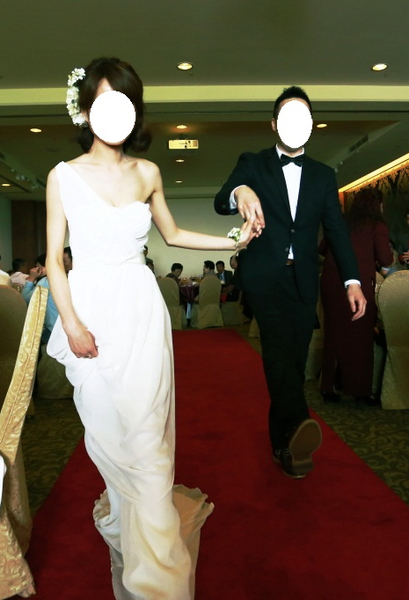 事實證明真的比在其它數間工作室試穿的禮服都還適合我 , 送客禮服可是跟賓客拍照最多的一件 可不能隨便阿  ; 感謝帥帥幫我說服長輩 ( 還是說服長輩比說服我容易? ) . 果然當天大家都覺得很適合我 ; 完全沒有覺得都是白色會都一樣的問題 我覺得我的堅持是對的啦! 哈哈 ~