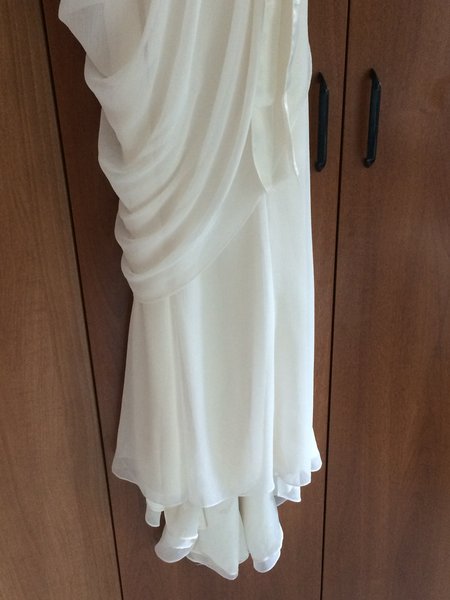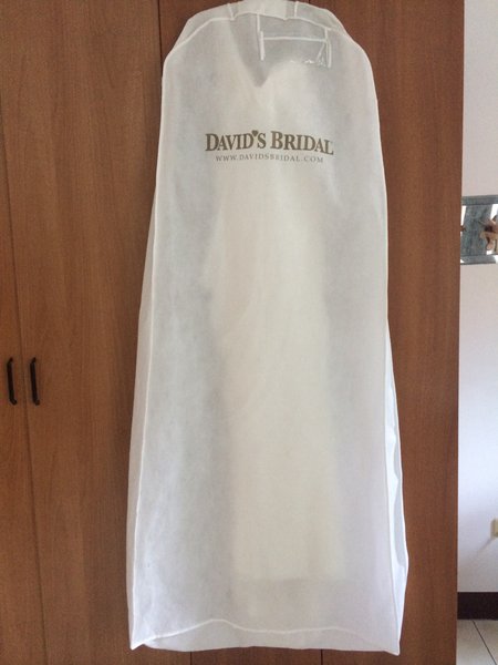 < 下圖是禮服帶回來的細節 因為臨時買的 沒有準備合適的袋子 直接拎回 所以這次有額外買一個 davidsbridal  原廠防塵袋 先購買者可先免費一起帶走原廠防塵袋  照片裡白色腰帶是原本禮服就有附的腰帶 而黑色腰帶是我自己的 如果喜歡可以免費一起帶走 >