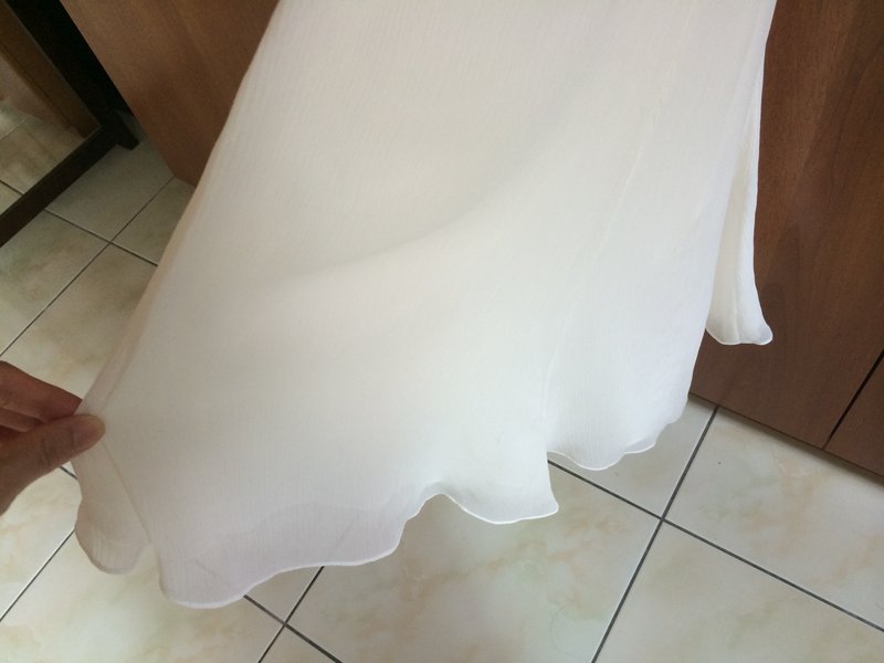 國外 0 號尺寸對我來說略大 所以我有稍稍修改  縫份都有留 且是可以還原的 長度沒有改 < 我是特地請教夏姿櫃姐 送去專門修改夏姿禮服的修改室 送洗也是送洗禮服專門店 所以請放心>
