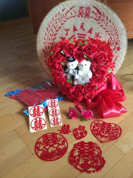 以上用品是婆婆媽媽在結婚用品百貨店購入,哩哩摳摳加起來也花了快2000元,一次全部帶走優惠800元(不含運),並贈送香燭禮炮1盒&胸花12朵喔!!
