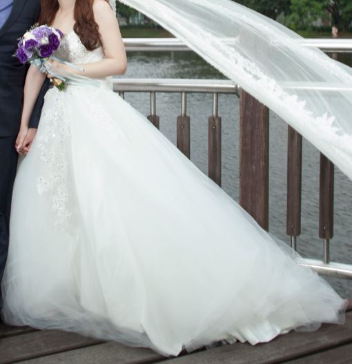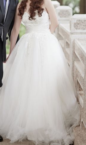 售甜美公主型白紗(澎)+性感紫禮服(A line)+氣質大露背白紗(魚尾)