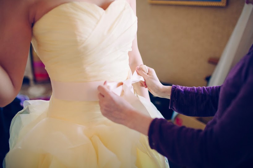 [售] 鵝黃色花苞裙拖尾加長100cm