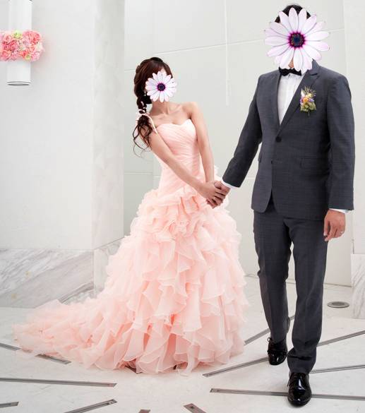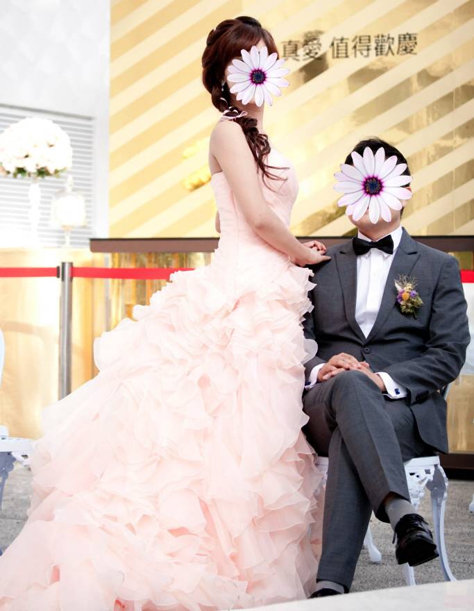 售粉紅色桃心領多層次浪漫風禮服
