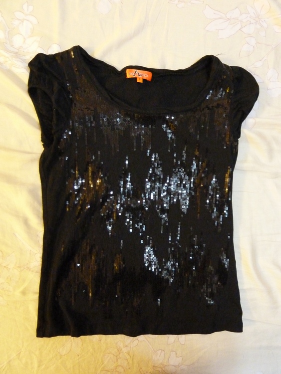 這件為亮片黑色上衣,s號,當初買價為800元,完好如初,現單賣200元含運