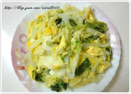 同事說自助餐的菜色裡,有一道「山東大白菜炒蛋」~